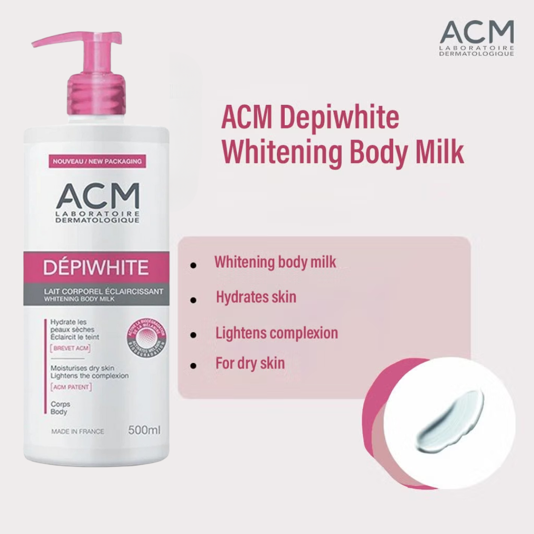 ACM Laboratoire Dépiwhite Whitening Body Milk 500ml is a nourishing and moisturising body lotion that also works on dark spots, containing a mixture of active ingredients ensuring a brighter, more even skin tone.