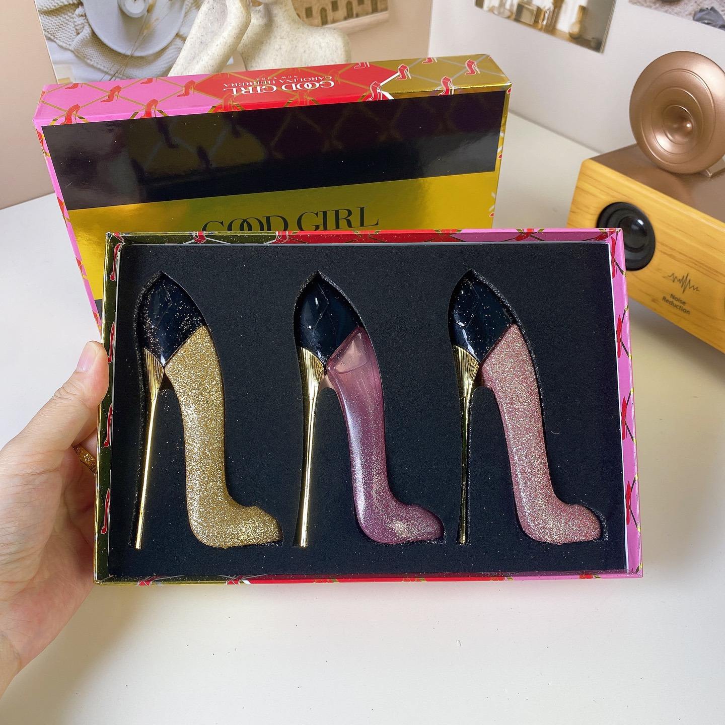 Indulge in elegance and bold femininity with the Carolina Herrera Good Girl Miniature Gift Set. This luxurious set features three iconic stiletto-shaped perfume bottles, beautifully presented in a premium gift box. Each miniature fragrance reflects a unique expression of the Good Girl spirit, blending sophistication, confidence, and glamour.