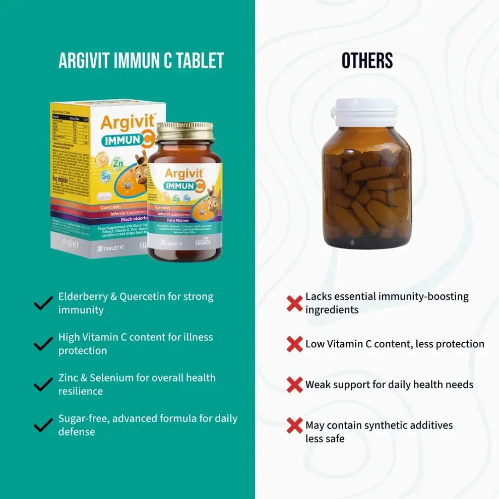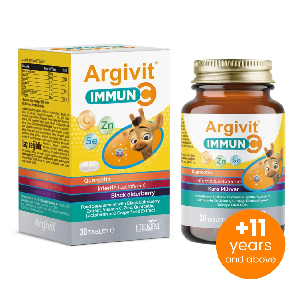 Strengthen your immune system with ArgivitImmun C Tablets, a powerful dietary supplement designed to enhance your health. Packed with Black Elderberry extract, Vitamin C, Zinc, and Grape Seed extract, these tablets are perfect for individuals aged 11 and above who want to support their immune system and overall well-being. With its scientifically formulated blend, Argivit is your reliable partner in maintaining a healthy lifestyle.