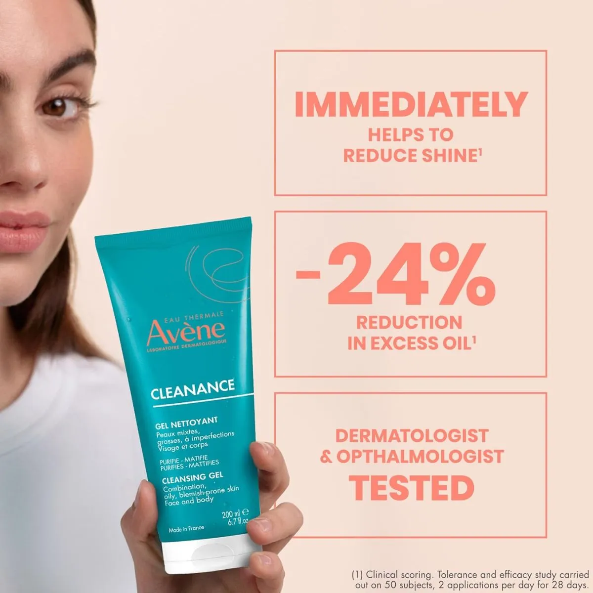 Avene Cleanance Cleansing Gel is a gentle, soap-free formula designed to cleanse and purify oily and acne-prone skin. Infused with Avene Thermal Spring Water, this gel removes impurities