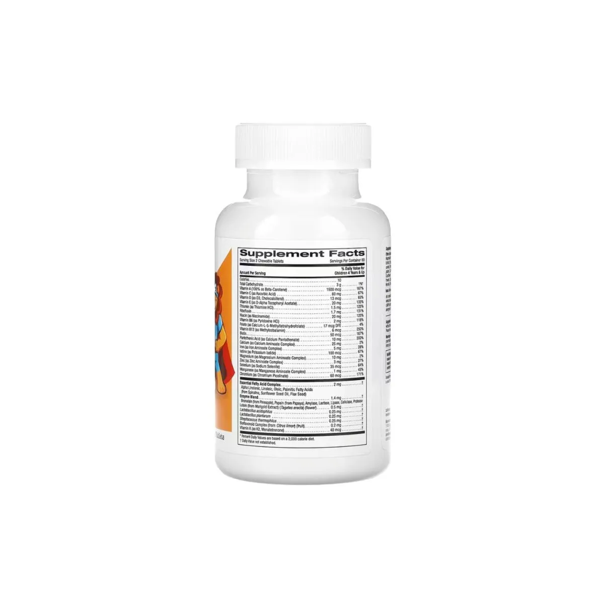 California Gold Nutrition Kids Chewables combine essential daily vitamins and minerals with beneficial probiotics and enzymes in a tasty, triple-fruit chewable capsule. This formula delivers comprehensive nutritional support—covering Vitamin C, D3, A, E, B-complex, zinc, and more—while also promoting digestive health and nutrient absorption through added probiotic cultures and digestive enzymes.