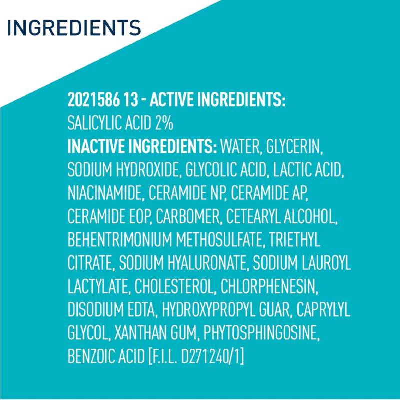 Formulated with 3 essential ceramides to help support the skin moisture barrier and niacinamide to help comfort skin. Recommended for use once per day in the evening, this salicylic acid enriched gel formula with a effective blend of AHA and BHA is oil-free and free of drying alcohol, leaving skin looking more radiant, smooth and visibly clearer after 3 days.