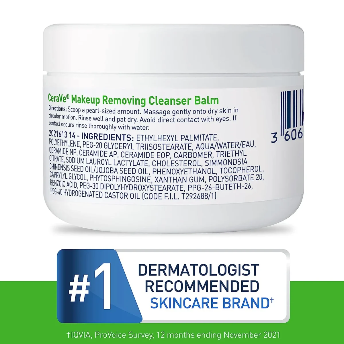 - [ CLEANSING BALM FOR FACE ] CeraVe Makeup Removing Cleanser Balm, enriched with three essential ceramides, removes stubborn makeup without a greasy residue, ideal as a travel makeup remover