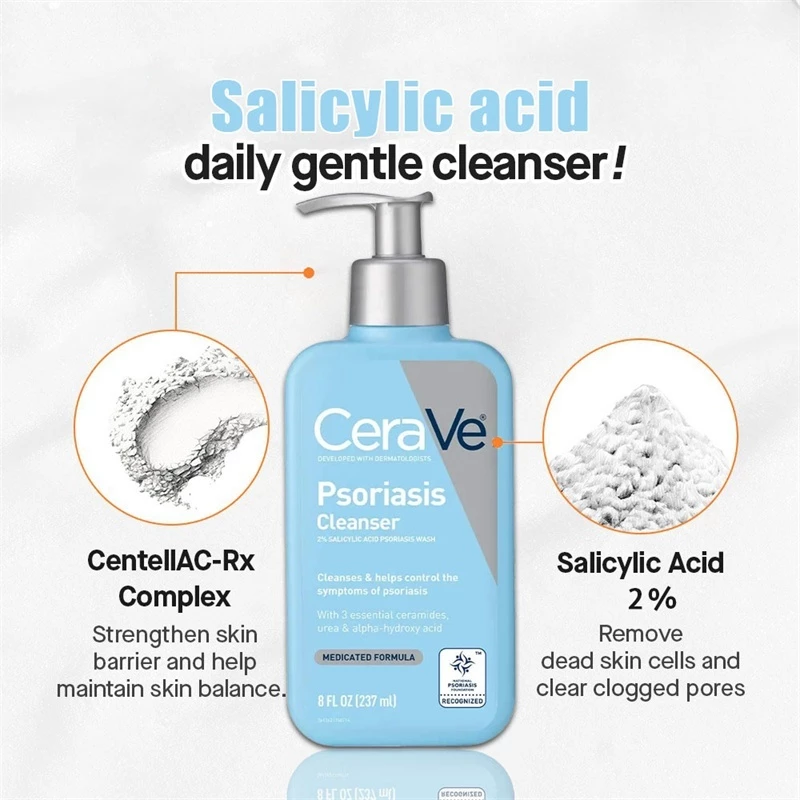 With 2% salicylic acid to help relieve irritated skin, lactic acid for mild exfoliation, three essential ceramides to promote skin-barrier function, moisturizing glycerin and urea, plus soothing niacinamide, CeraVe Psoriasis Cleanser gently cleanses psoriasis-prone skin, removes scales and helps the skin retain moisture. Our dermatologist-developed, allergy tested psoriasis body wash, coupled with CeraVe Psoriasis Moisturizing Cream, helps clear visible symptoms of psoriasis and helps prevent them from coming back.