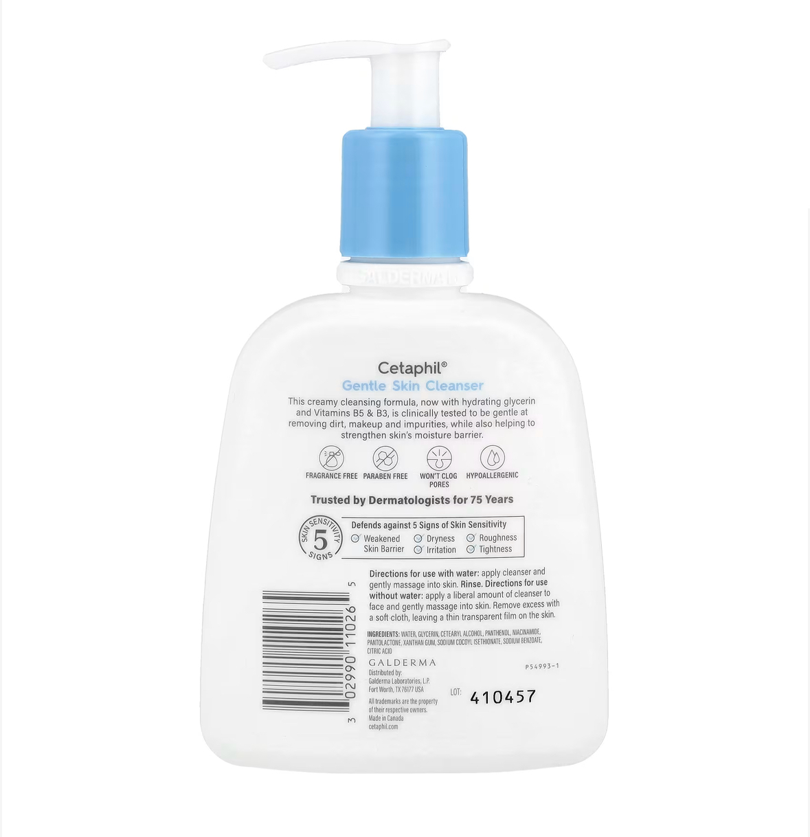 This creamy cleansing formula, now with hydrating glycerin and Vitamins B5 & B3, is clinically tested to be gentle at removing dirt, makeup and impurities, while also helping to strengthen skin’s moisture barrier.