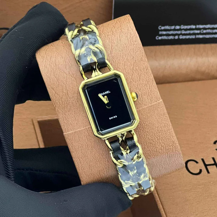 Chan.el Première Black Yellow Chain Leather Strap A well-proportioned design with a clean and contemporary wrist profile.