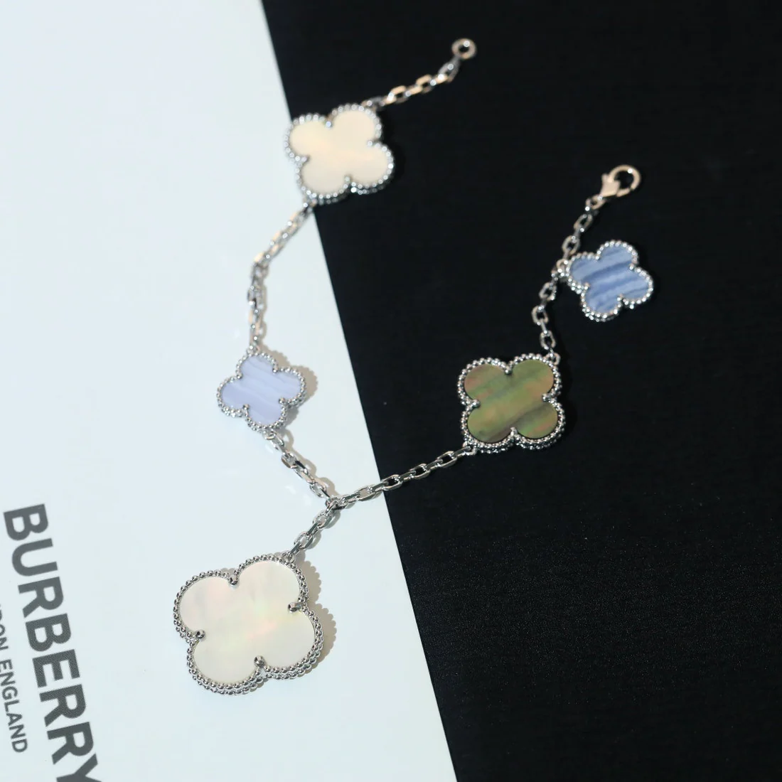 CLOVER BRACELET 5 MOTIFS MOP CHALCEDONY SILVER
