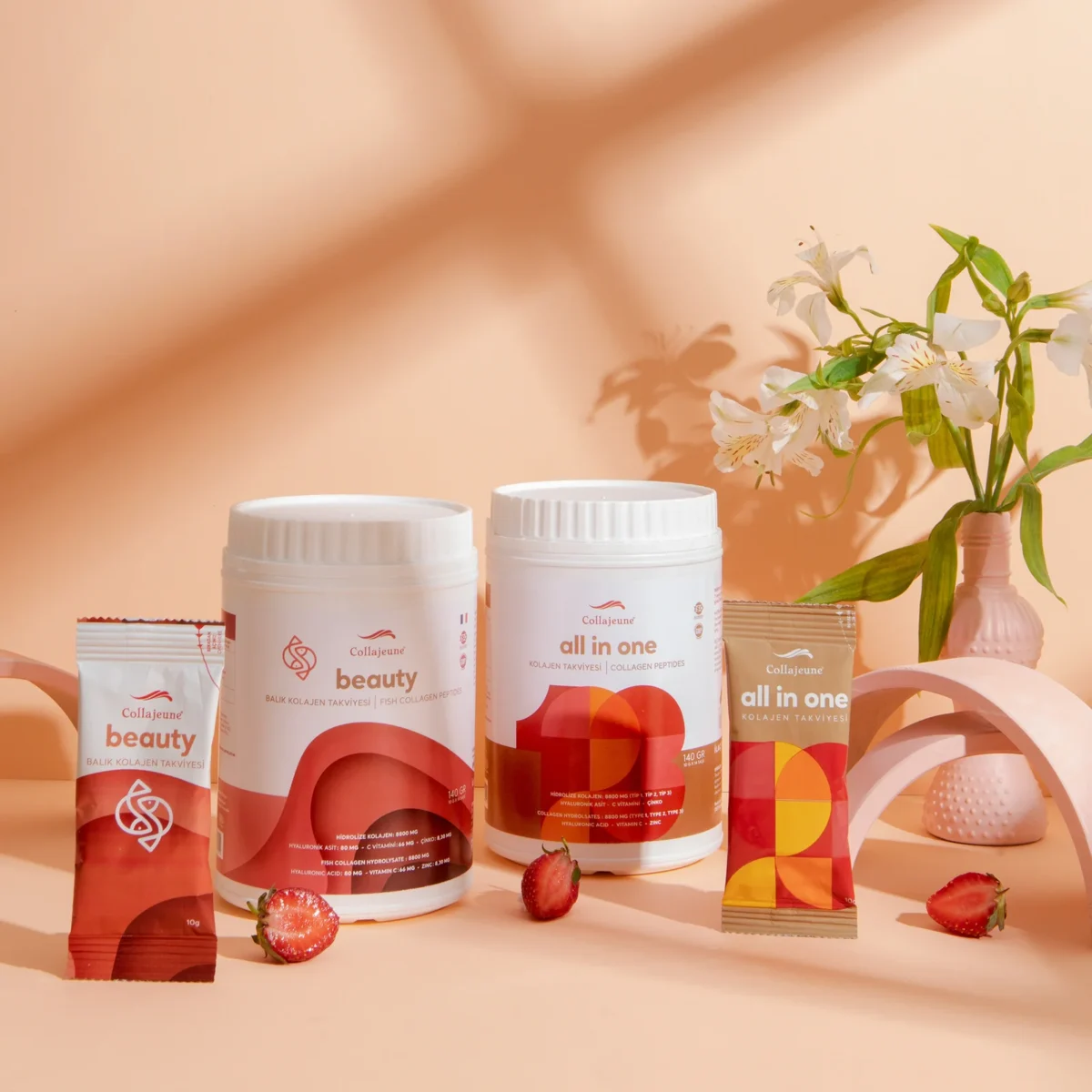 Rich in Vitamin C, hyaluronic acid, and zinc, it is very convenient to drink thanks to its special strawberry flavor.
