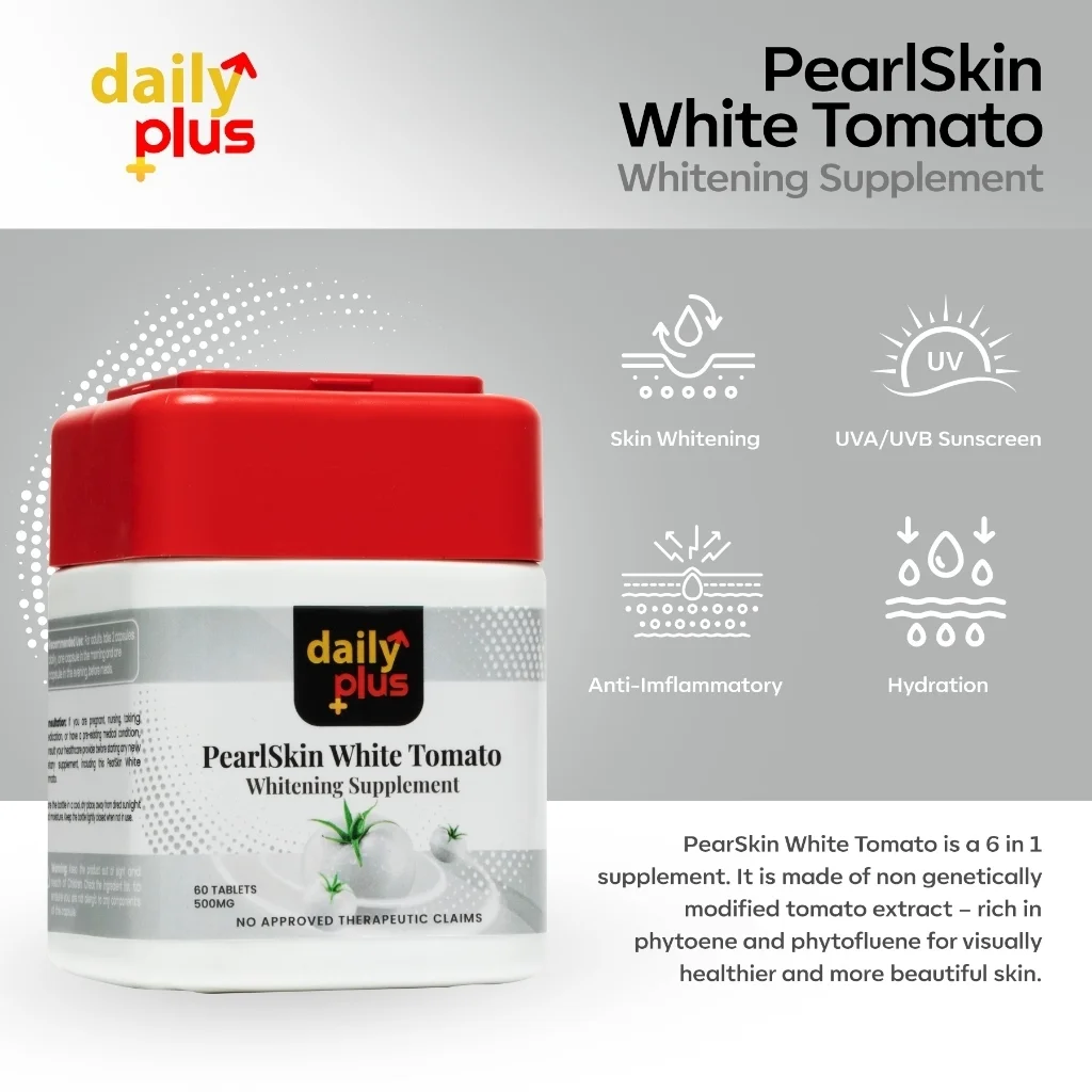 PearlSkin White Tomato is a 6-in-1 dietary supplement designed to enhance skin health and beauty. Made from non-GMO tomato extract, it is rich in phytoene and phytofluene for a more radiant complexion.