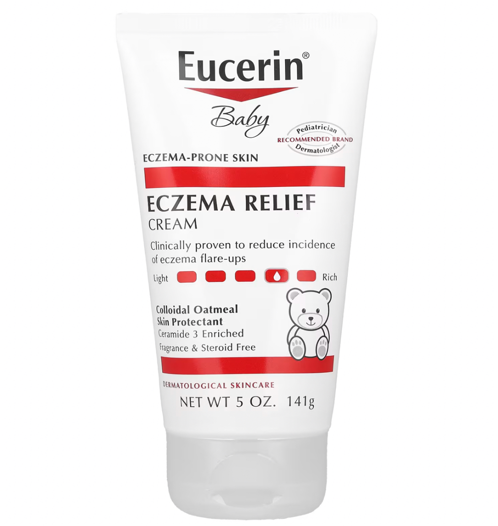 Eucerin® Baby Eczema Relief Cream – a clinically proven moisturizing formula that relieves and fortifies dry, itchy, eczema-prone skin.