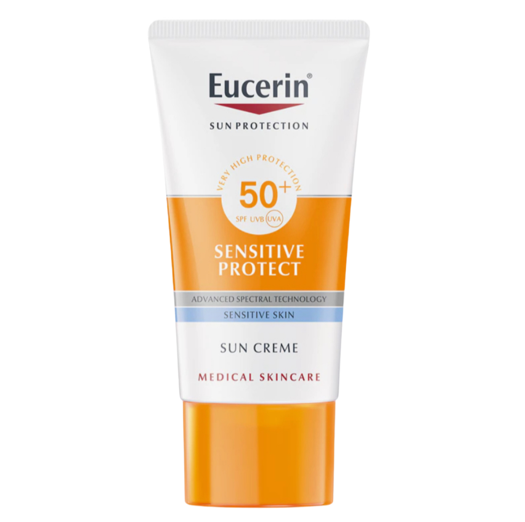 Protect your skin with Eucerin® Sun Protection Sun Creme Face SPF50+ Very High SPF 50+, a non-greasy, waterproof face sunscreen that protects the skin and its cells from harmful UV rays.