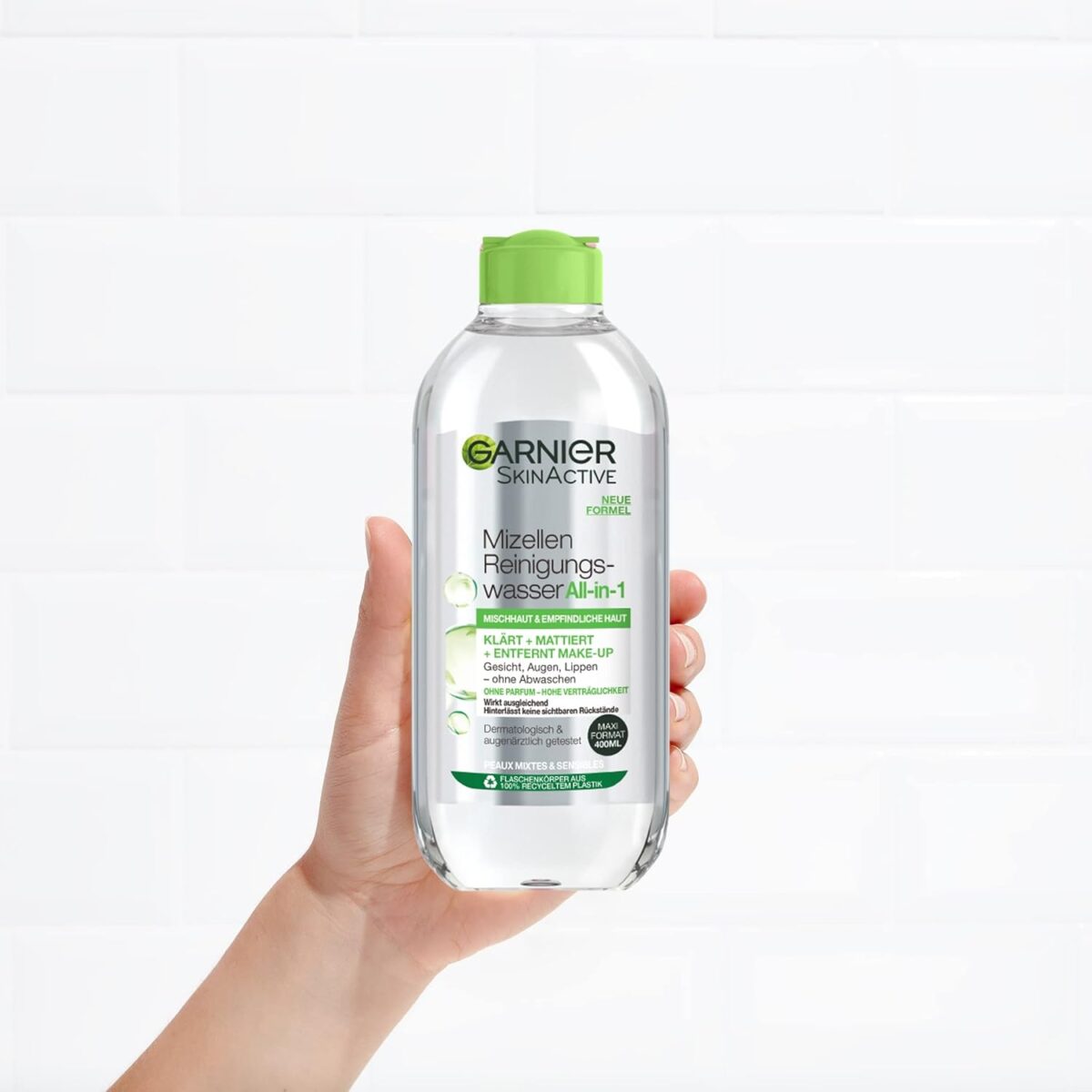 Cleanse and refresh your skin with Garnier Skin Naturals Micellar Cleansing Water micellar water for combination and sensitive skin. The gentle and anti-allergic makeup remover removes everyday dirt and makeup while soothing the skin; the skin feels and looks clean and fresh. Odourless, mattifying cleansing water is mild enough to be used around the eyes and mouth. Does not require rinsing. –