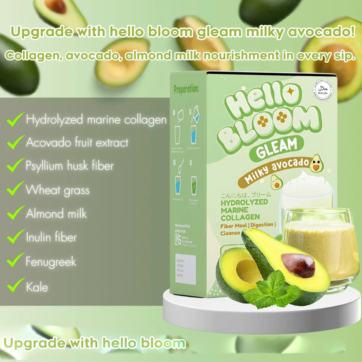 Hello Bloom Gleam Collagen Drink, Avocado, 10 Sachets