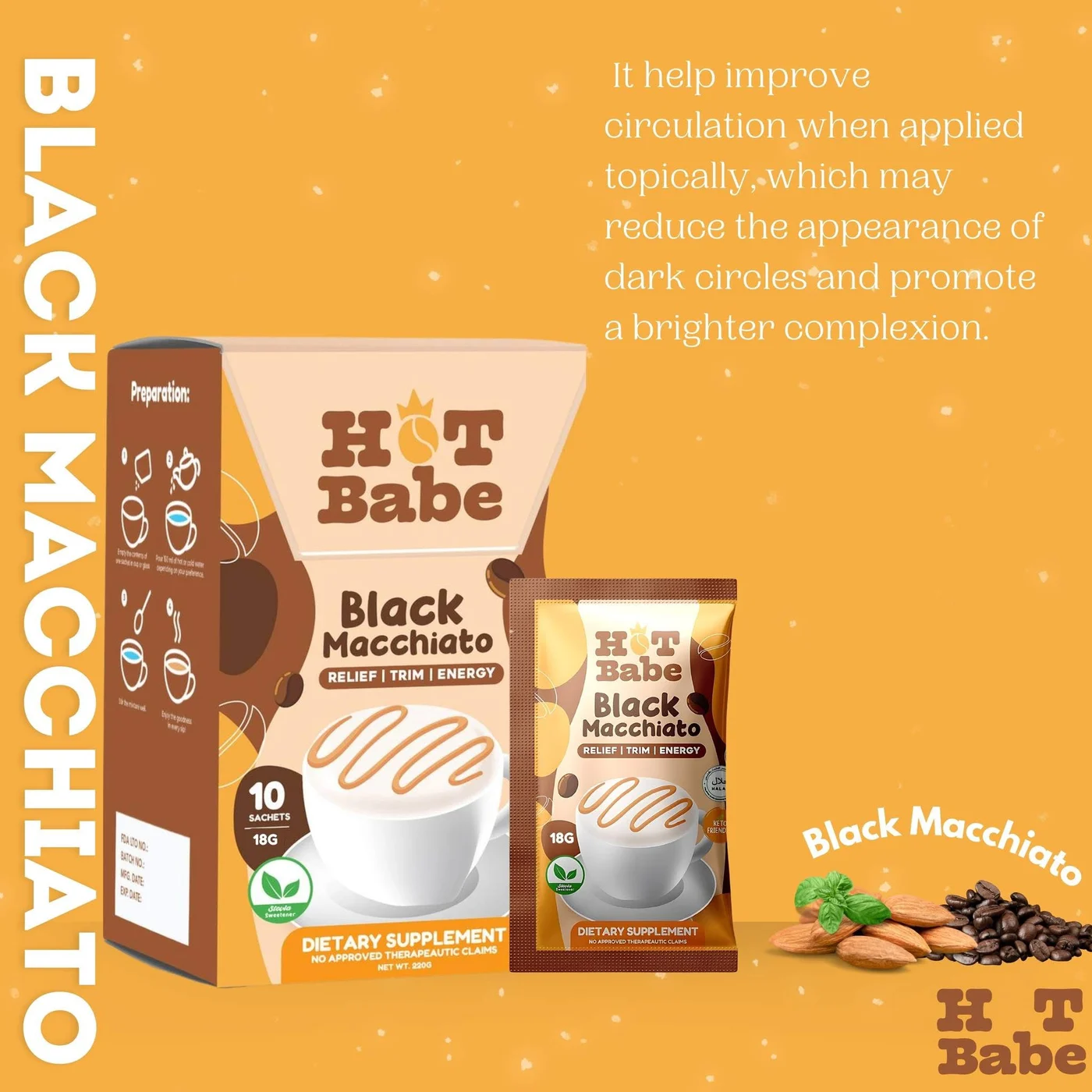 Black Macchiato, a harmonious blend that combines the boldness of Robusta Coffee with smoothness of Arabica Coffee, delivering a rich and satisfying taste. Infused with the creamy goodness of Almond Milk and enriched with Fenugreek Seeds, Dandelion, Ginseng, Psyllium Husk Fiber, and L-Carnitine, it strikes a perfect balance flavor and wellness benefits. This blend aids in promoting regularity and alleviating discomfort, ensuring a gratifying digestive experience. Treat yourself to a revitalizing beverage that delights the palate, nourishes the body, and supports digestive health.