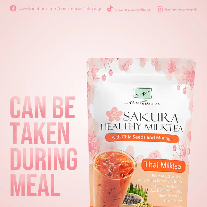 Delicious and Healthy Sakura Milk Tea with Chia Seeds and Moringa!