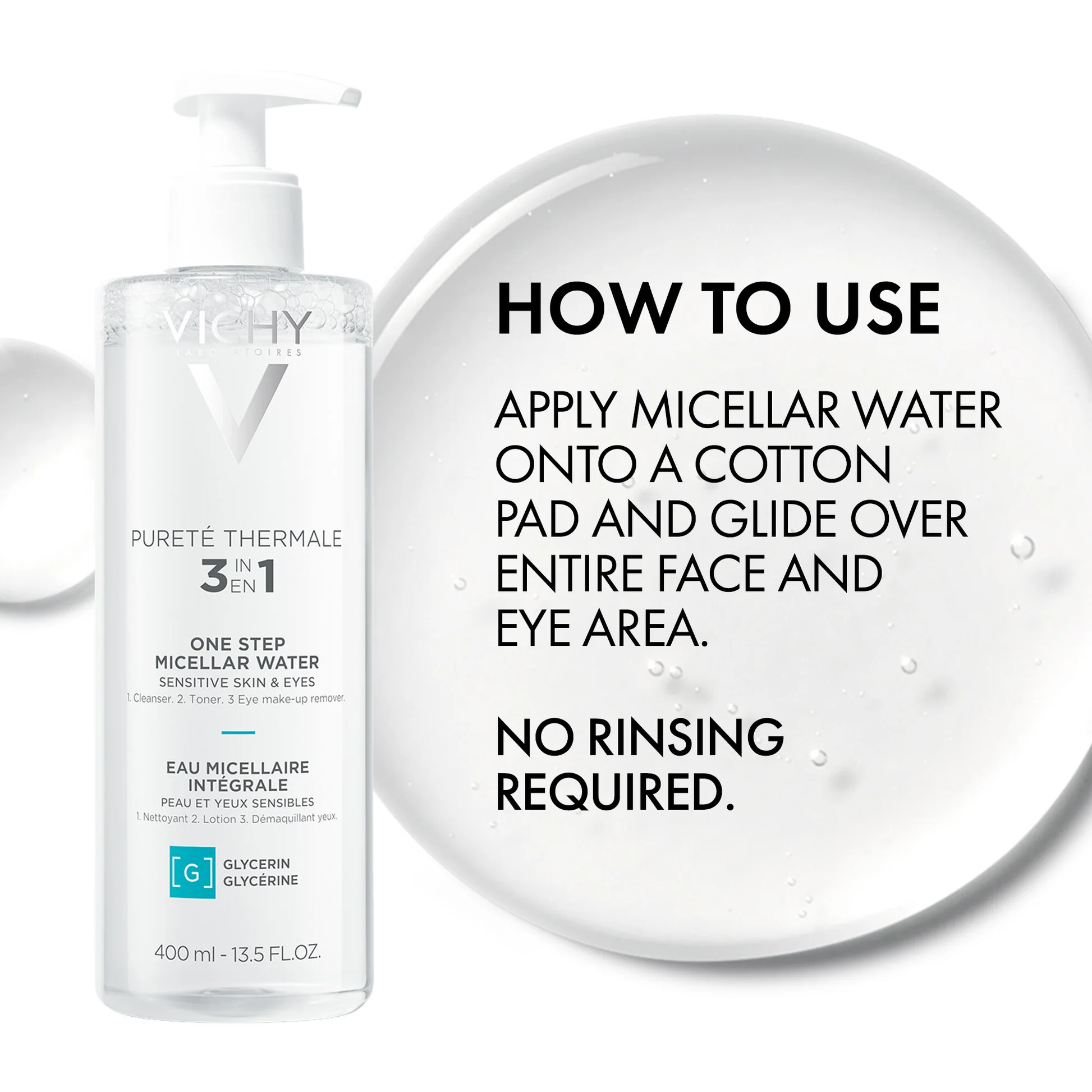 One step on the way to perfectly cleansed and soothed skin is enough. Vichy Pureté Thermale micellar liquid for sensitive skin effectively removes makeup, excess sebum and any impurities from the face.