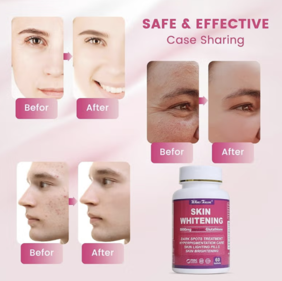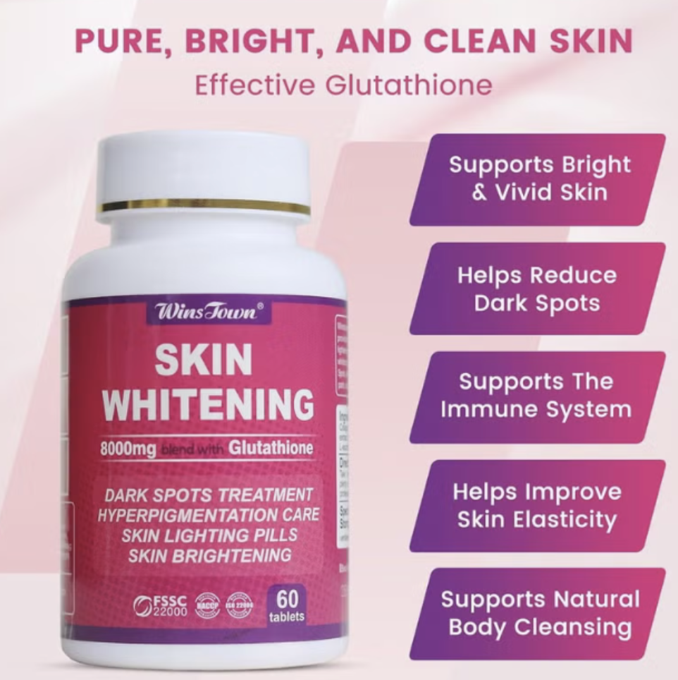 WinsTown Skin Brightening 8000mg is an advanced beauty supplement meticulously formulated to help you achieve a glowing, even-toned complexion. With an impressive 8000mg of high-quality skin-brightening ingredients, this supplement works from the inside out to visibly lighten dark spots, reduce pigmentation, and promote an overall radiant appearance. This potent formula is designed to target and diminish skin discoloration, making it an ideal solution for anyone seeking to enhance their natural glow.